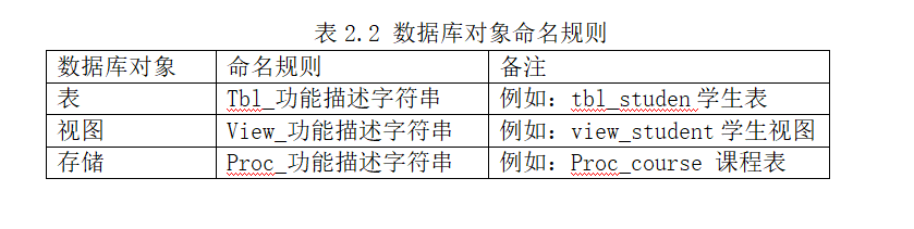 2.3数据库对象命名规则